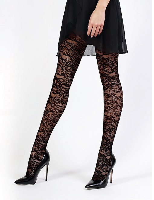 Dámske čierne pančuchové nohavice s krajkovým vzorom. Pančuchy sú vyrobené z príjemného, elastického materiálu, ktorý zaručí, že pančuchy sa krásne prispôsobia vašej postave. Vyrobené z priadze typu elastan, so všitým klínom.